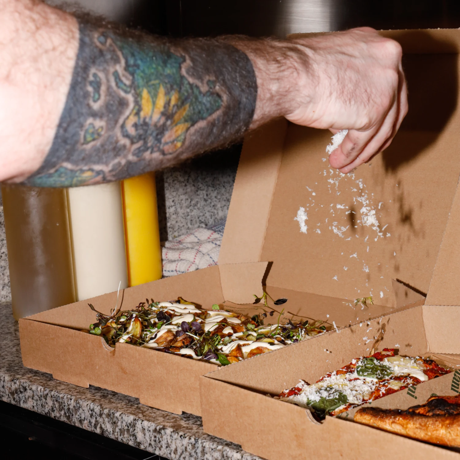 We created logotype inspired by the bubbly dough used for the pizza. Manis primary typeface is Gela by polytype. This is paired with illustrations of a plethora of hands. The hands were inspired by Bruno Munaris book Speak Italian: The Fine Art of the Gesture.